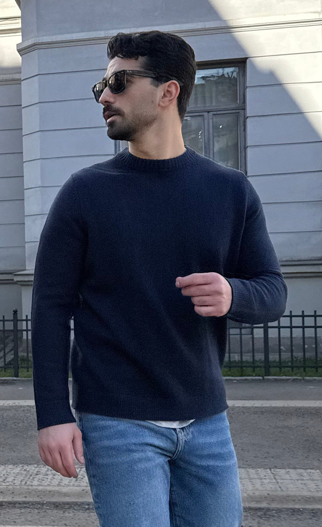 Wool Blend Sweater er en myk og varm ullblandet genser med klassisk rund hals. Ideell for både hverdagsbruk og smart-casual anledninger.